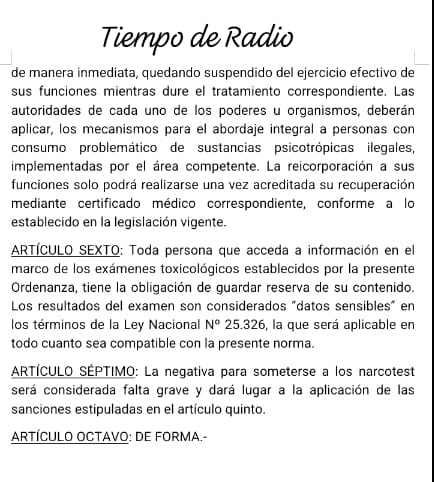 Finalmente, Del Carril abordó la consecuencia de un eventual resultado positivo. Lejos de un enfoque meramente punitivo, la ordenanza propone un abordaje sanitario, aunque apartando al funcionario de su cargo temporalmente para garantizar la integridad de la función pública.