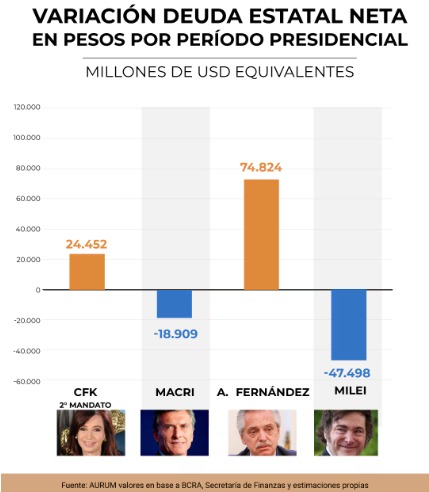 Milei: única gestión con saldo negativo (reducción de deuda).
